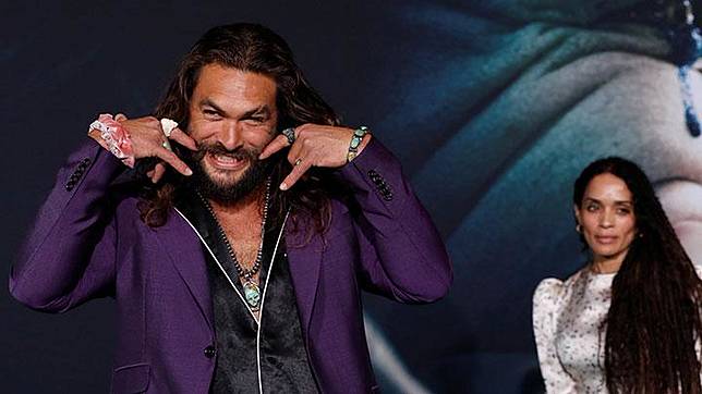 It featured momoa in his dc superhero aquaman avatar standing waist deep in water.